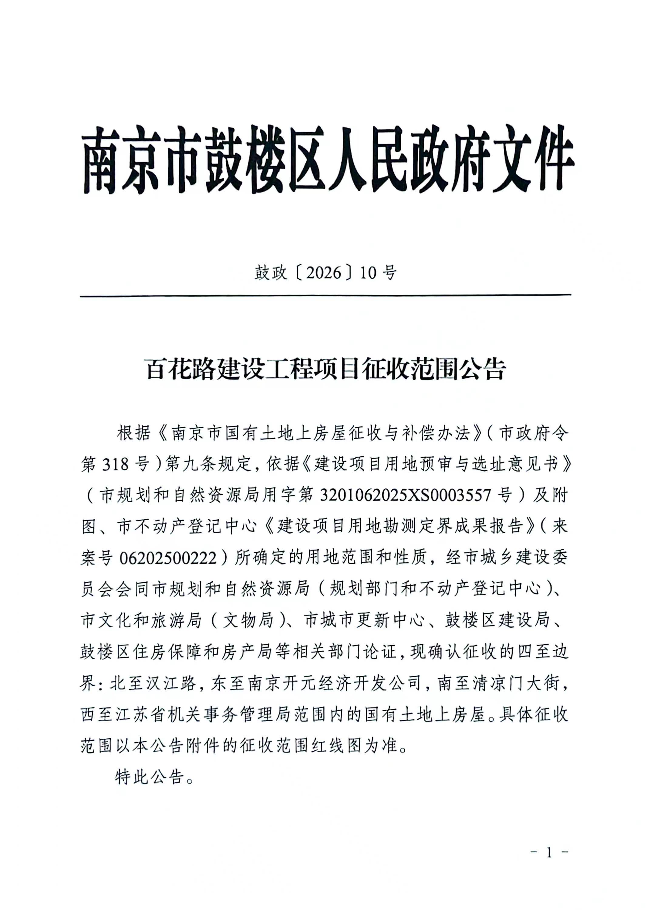 | 文 号: | 关 键 词: | 征收范围公告 | |