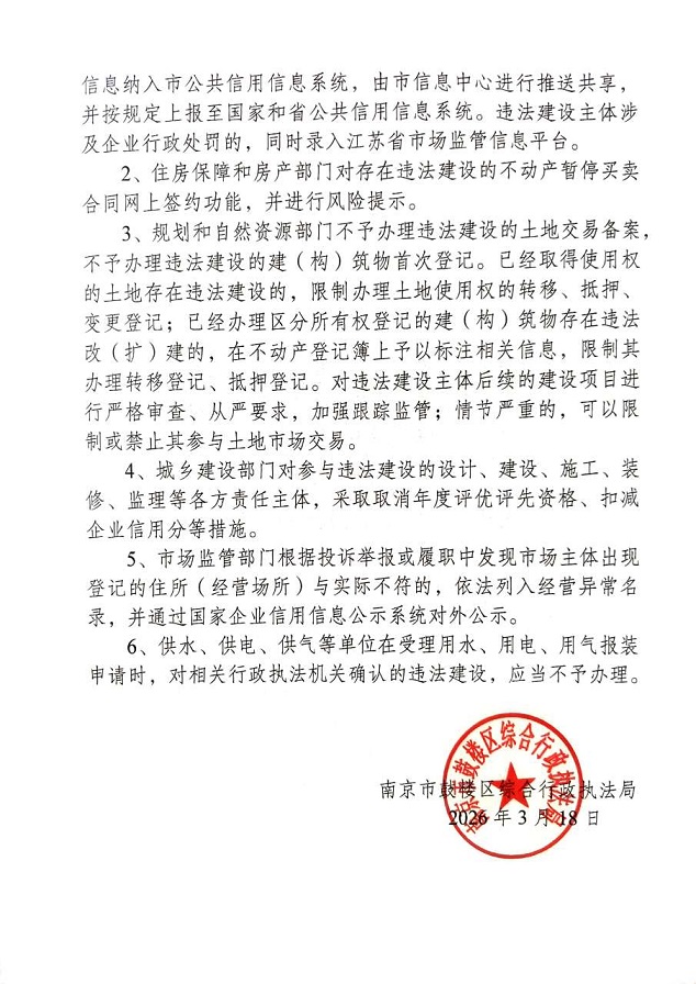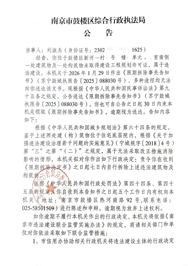 南京市鼓楼区综合行政执法局公告