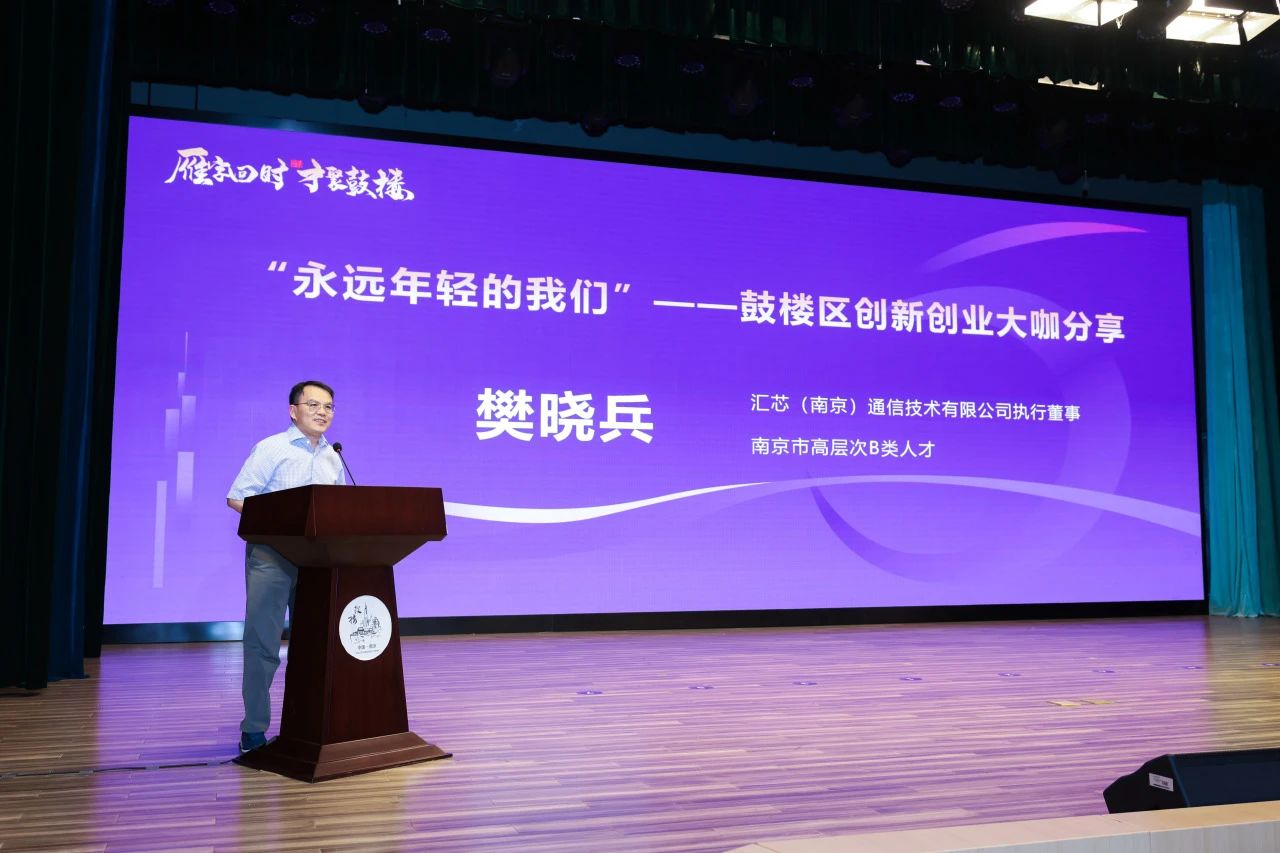 南京市高层次B类人才、汇芯(南京)通信技术有限公司创始人、南师附中校友樊晓兵作“永远年轻的我们”主题分享。