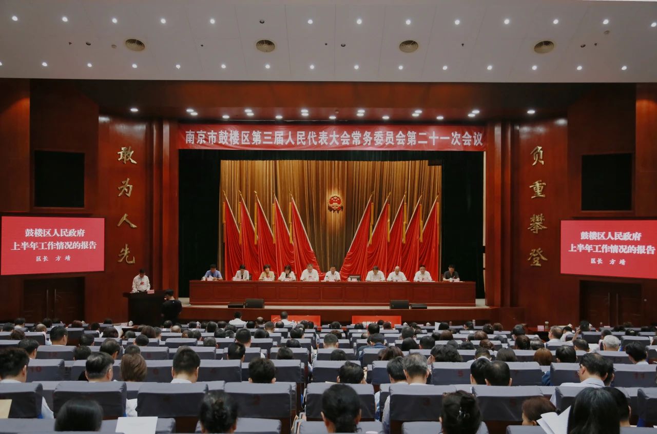 8月29日,南京市鼓楼区第三届人民代表大会常务委员会召开第二十一次会议。区人大常委会全体组成人员出席会议,部分市人大代表、300余名区人大代表列席会议。会议由区人大常委会主任陆敏主持。 会议听取了鼓楼区政府区长方靖所作的区政府关于2024年上半年工作情况和下半年工作安排的报告。 会议表决通过了区政府、区监委提请的有关人事任免事项,向任命人员颁发任命书并举行宪法宣誓仪式。 会议听取和审议了区政府关于2023年区级财政决算草案的报告、关于2023年度区级预算执行和其他财政收支情况的审计工作报告,审查批准了2023年区级财政决算;审议了区政府关于2024年上半年国民经济和社会发展计划、预算执行情况的报告;听取和审议了区政府关于2023年度行政事业性国有资产管理情况的报告,审议了区政府关于2023年度国有资产管理情况的综合报告。 会议听取和审议了《江苏省就业促进条例》执法检查情况的报告。